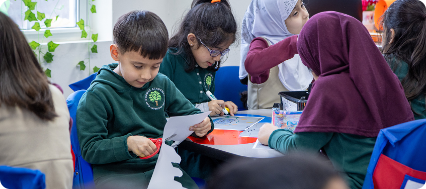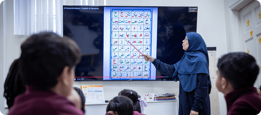 Our Arabic program is designed to build strong foundational language skills while nurturing a love for the Arabic language and culture. In the early years, students are introduced to the Arabic alphabet, learning to recognize, name, and pronounce each letter. They begin to identify letter shapes and sounds in isolation and within words through fun, interactive activities. Basic vocabulary is introduced using themes such as colors, numbers, animals, family, and classroom objects. Students learn common greetings, simple sentences, and basic conversation skills to express themselves in everyday situations. Nasheed, stories, games, and visuals help reinforce vocabulary and pronunciation in an engaging way.
