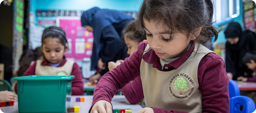 The age of four is a time of remarkable growth and development, marking a period of rapid changes in a child’s cognitive, social-emotional, and physical abilities. This transformative year of exploration and discovery requires more than just a one-size-fits-all curriculum to meet the unique needs of each child’s personal development. At Hamza Academy, our Pre-Kindergarten program is specifically designed to offer a balanced combination of support and challenge, allowing every child to embark on their individual learning journey. As pioneers in early childhood education, we integrate research-based teaching methods with proven, traditional practices to provide your preschooler with a strong foundation in both knowledge and skills. Our experienced and caring teachers are attentive to each child’s needs, utilizing a variety of teaching strategies and engaging multiple learning styles—auditory, visual, and tactile—to ensure that every four-year-old is prepared to thrive in kindergarten and beyond.